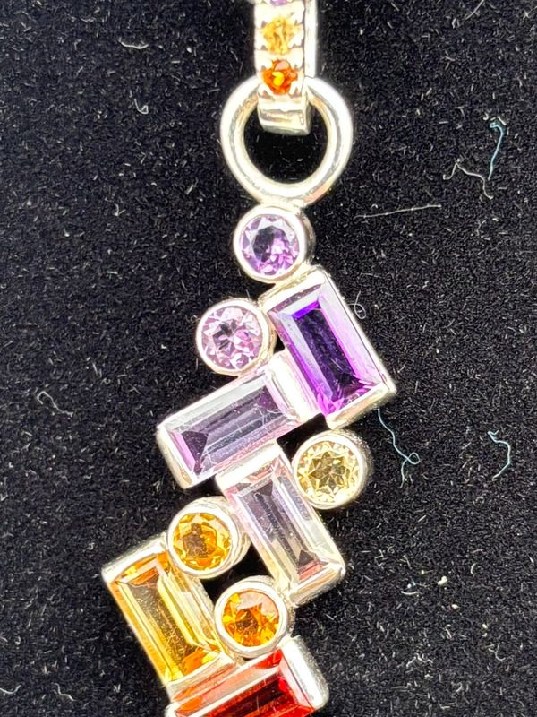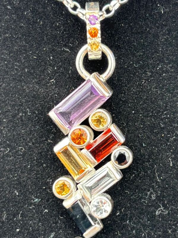 Ametrine tumble is a piece that celebrates colour in motion. With flowing transitions of purple, amber, and yellow, this pendant evokes the natural fusion of amethyst and citrine tones – rich, warm, and endlessly expressive. Each curve and facet mirrors the graceful shift between energies, from calm to vitality, in a vibrant dance of light and shade.